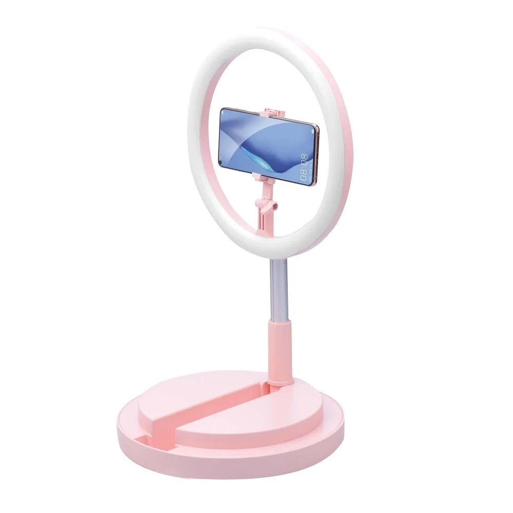 Lässt sich flach zusammenfalten, wodurch es leicht zu tragen ist. Perfekt für Streaming, Online-Lernen, Foto- und Videoerstellung sowie für alltägliche Aktivitäten wie Schminken. Die Lampe hat drei Lichtfarben: warm, neutral und kalt. 144 gleichmäßig verteilte LEDs sorgen für eine vollständige Ausleuchtung des Gesichts und der Objekte. Eine spezielle Halterung im Ring ermöglicht es dir, dein Handy darin zu platzieren. Durch den großen Abstand der Arme passt es auf die meisten auf dem Markt erhältlichen Smartphones. Mit dem Griff kannst du den Winkel des Rings mit dem Handy und die Drehung des Geräts einstellen – du kannst es vertikal oder horizontal einstellen. Das Set verfügt über ein hohes, verstellbares Stativ. Je nach Bedarf kannst du eine große Auswahl an Stativhöhen einstellen: ca. 58–170 cm. Dies ermöglicht die Aufnahme von Materialien im Stehen und macht das Set vielseitig einsetzbar. Die Ring LED wird mit dem Netzladegerät aufgeladen. Das Set enthält ein 2 m langes USB-Kabel mit einer Fernbedienung, mit der du die Intensität und Farbe des Lichts einstellen können. Das Kabel mit der Fernbedienung ist vollständig im Fuß des Stativs verborgen, wodurch das Set klein und leicht zu transportieren ist.